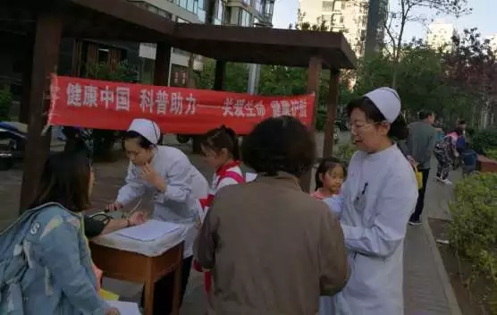 2018年5月9日海港医院内分泌科为海港区森林家园小区居民举办了“健康中国•科普助力”免费义诊活动。上午8:00内分泌科护士长陈鹏和护士曹杨,来到小区中心广场为居民免费测血糖,免费量血压,免费发放科普资料。(1).jpg)