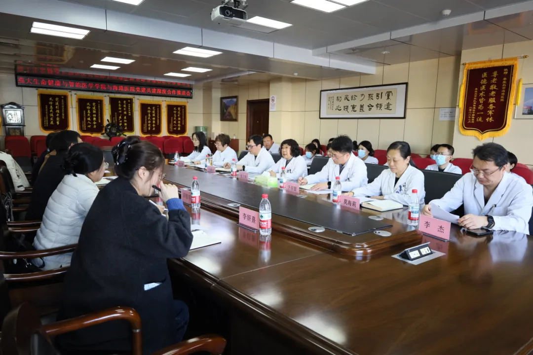 基于双方长期建立的互信基础,本次推进会创新采用“零形式、重实效”的会议模式。海港医院院领导班子、各支部书记及医务部、护理部等12个科室负责人,与燕山大学生命健康与智能医学学院党委书记姜文超、副院长张宁等一行5人进行面对面交流。双方通过“需求方案 + 解决方案”的靶向对接模式,针对医教研协同发展中的难点堵点提出创新性破解路径。
