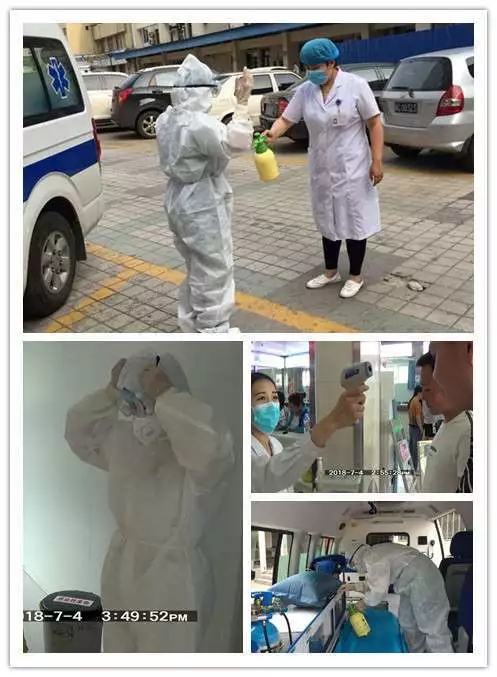 下午14:30,医务部、院感科、门诊部、发热门诊、急诊科、导诊共同演习了人感染H7N9分诊、接诊、隔离、转运及防护服穿脱流程。