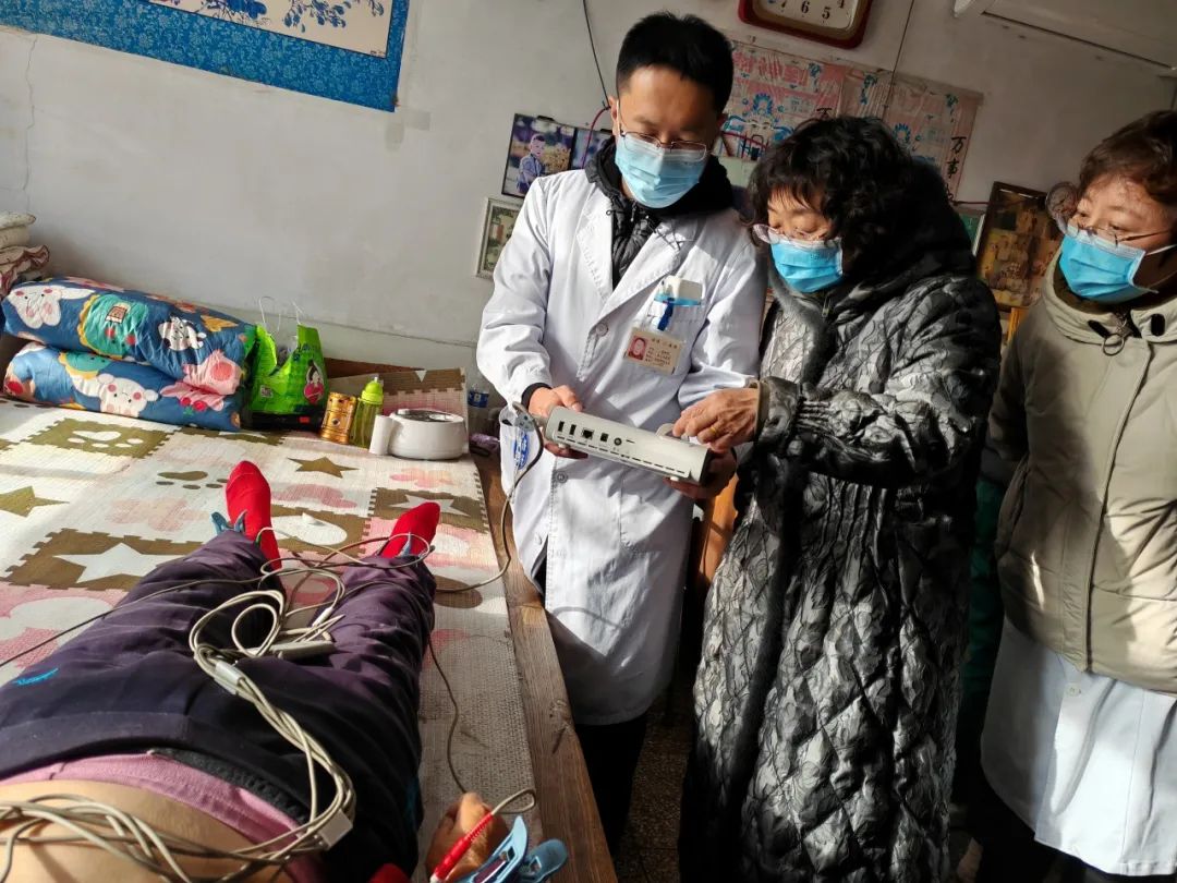医疗组在张立欣的带领下,走进行动不便的居民家中问诊,在全国劳动模范85岁王惠兰家、在82岁五保户张维生家、在84岁老党员刘淑芹家,张立欣详细询问病情,把脉问诊,测量血压,做心电图,测血糖,为他们找寻最佳治疗方案,让村民们深深感受到党建引领下医疗下乡的温暖。