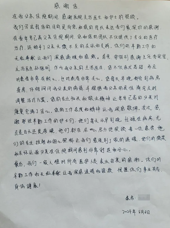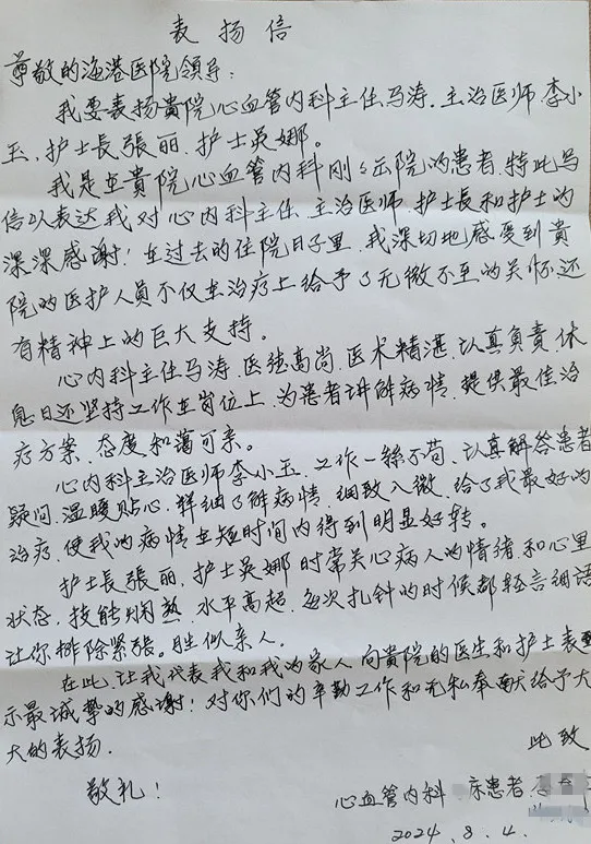 从主任到医生,再到护士,心内科医护团队的辛勤工作和无私奉献得到患者的充分可定和大大的表扬。