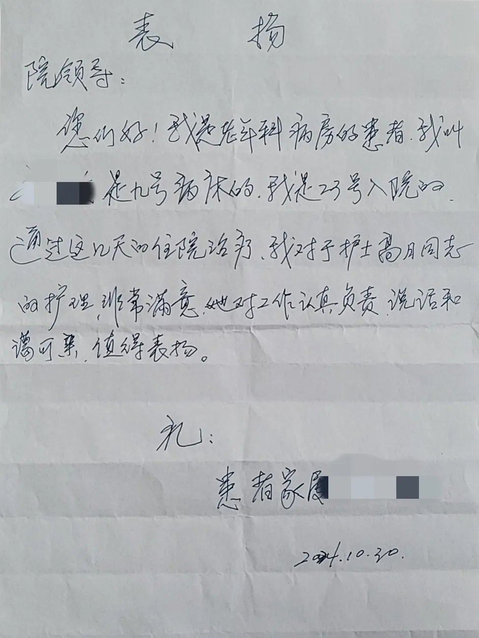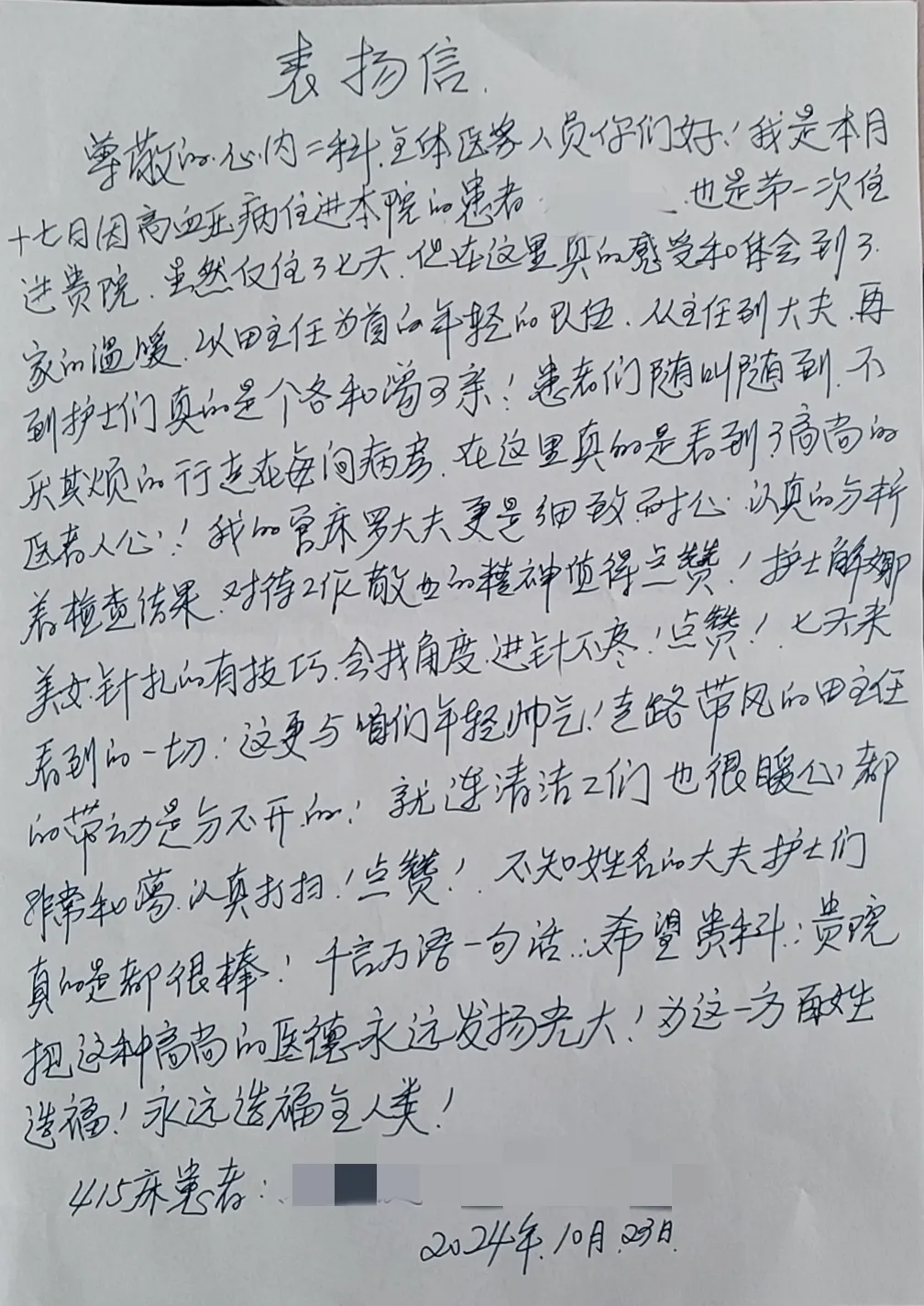 老年病科医护人员认真负责、和蔼可亲的工作态度,赢得患者赞扬。
