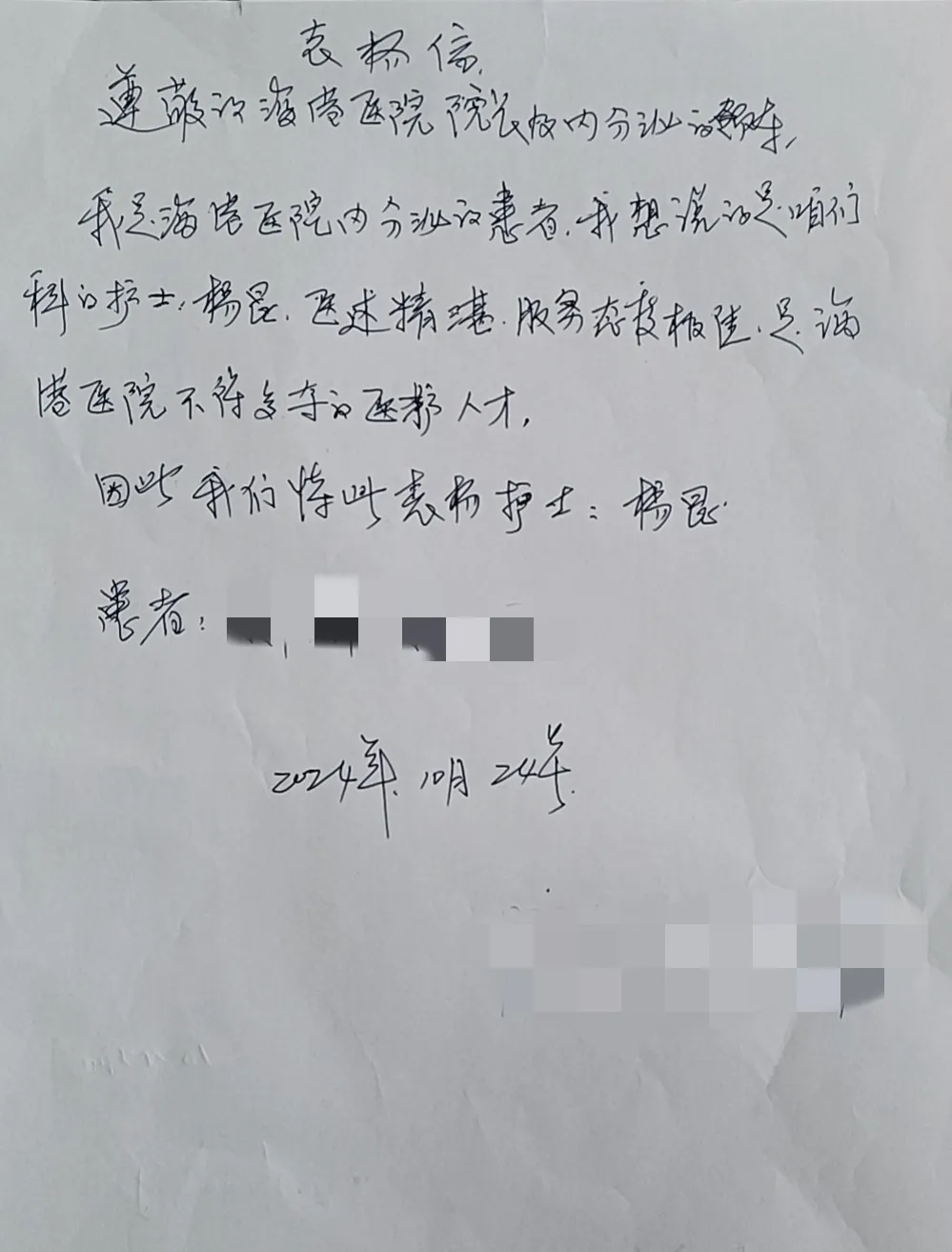 海医人用真诚、热情的优质服务,赢得了患者的一致好评,为海医人点赞!