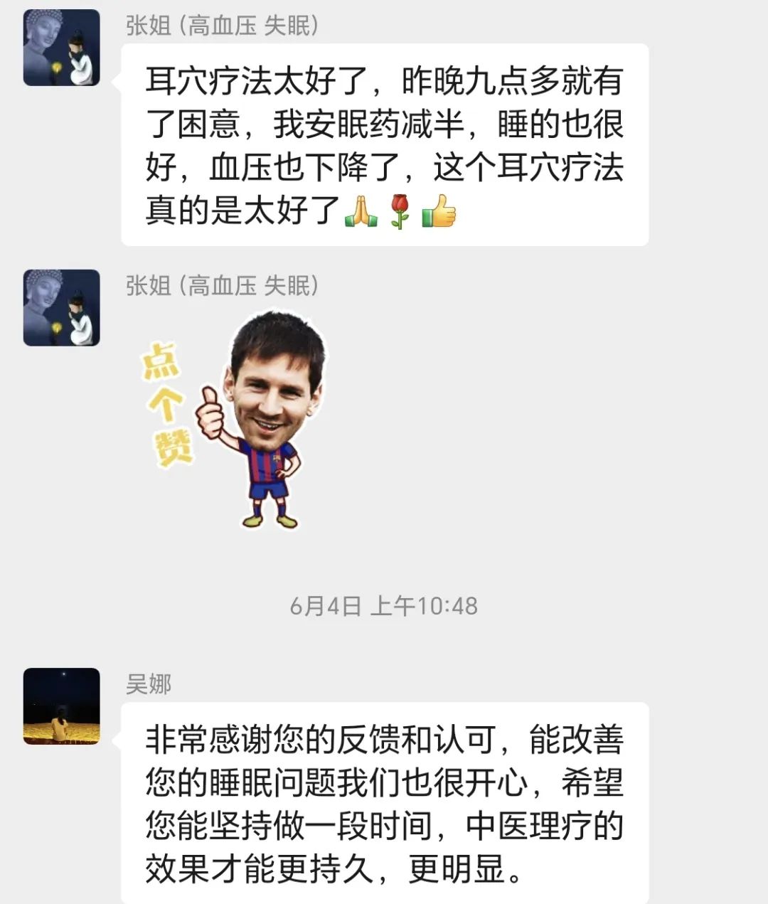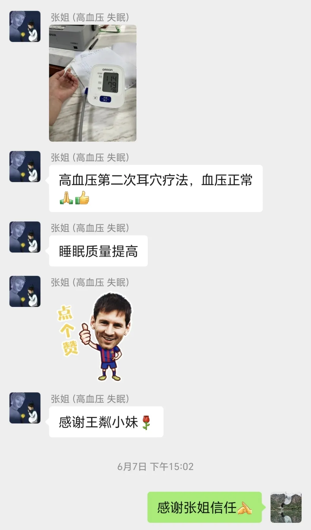 令人惊喜的是,仅仅贴压一个月,张女士便感受到了身体明显的变化。她开始根据自身状况调整用药。在血压控制方面,原本居高不下的血压显著下降,高压也稳定在了较为理想的范围内。多年来,她一直被高血压问题所困扰,各种降压药物效果都不理想,而海医耳穴贴压疗法却让她的血压得到了明显改善,这让她倍感欣喜。